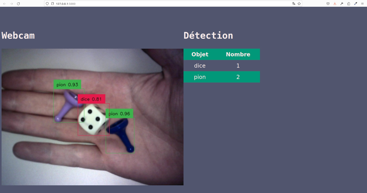 To test the model in a user-friendly and interactive way, I developed a simple web application using Flask. The application connects to a webcam and allows real-time detection of board game pieces using the trained YOLO model. This provided a practical demonstration of the system’s capabilities.